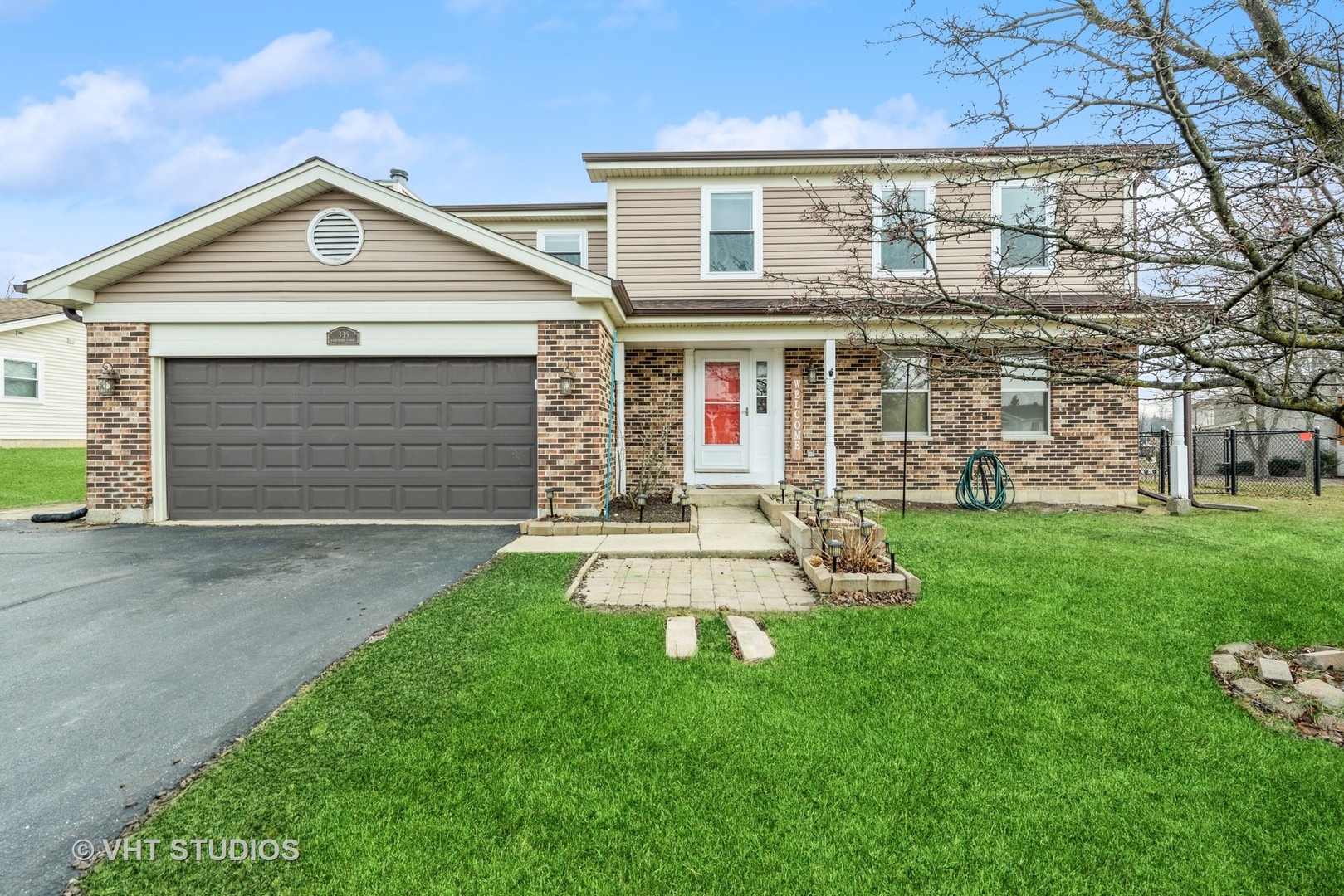 Highly sought after High Hill Farms subdivision! Lovely 4 bedroom, 3.1 bath Cypress model offers 2,145 square feet including a traditional floor plan with formal living room and formal dining room perfect for hosting your friends and family. The sun-filled kitchen boasts ample cabinet and counter space, a dedicated pantry and room for a table right by the sliders to the deck. The adjacent family room also has sliders to the deck as well as an inviting fireplace where you can gather to unwind at the end of the day. A newly updated powder room completes the main level. The upstairs houses all of the bedrooms which includes two primary-like suites as well as two additional secondary bedrooms. The main primary offers a vaulted ceiling, walk-in closet and private bath while the second primary has a shared bath. Convenient upper level laundry closet. This home also has a full basement for additional living space. Enjoy the large rec room while having ample storage/workshop options in the utility area, a bonus flex room plus a full bath! Two car garage and additional side apron accommodates for extra parking. Fenced yard. High Hill Farms is an established neighborhood in close proximity to parks, trails and an elementary school. Convenient to entertainment, shopping and dining options along Rt 62 and the Randall Rd corridor as well as METRA for commuters and Interstate access.