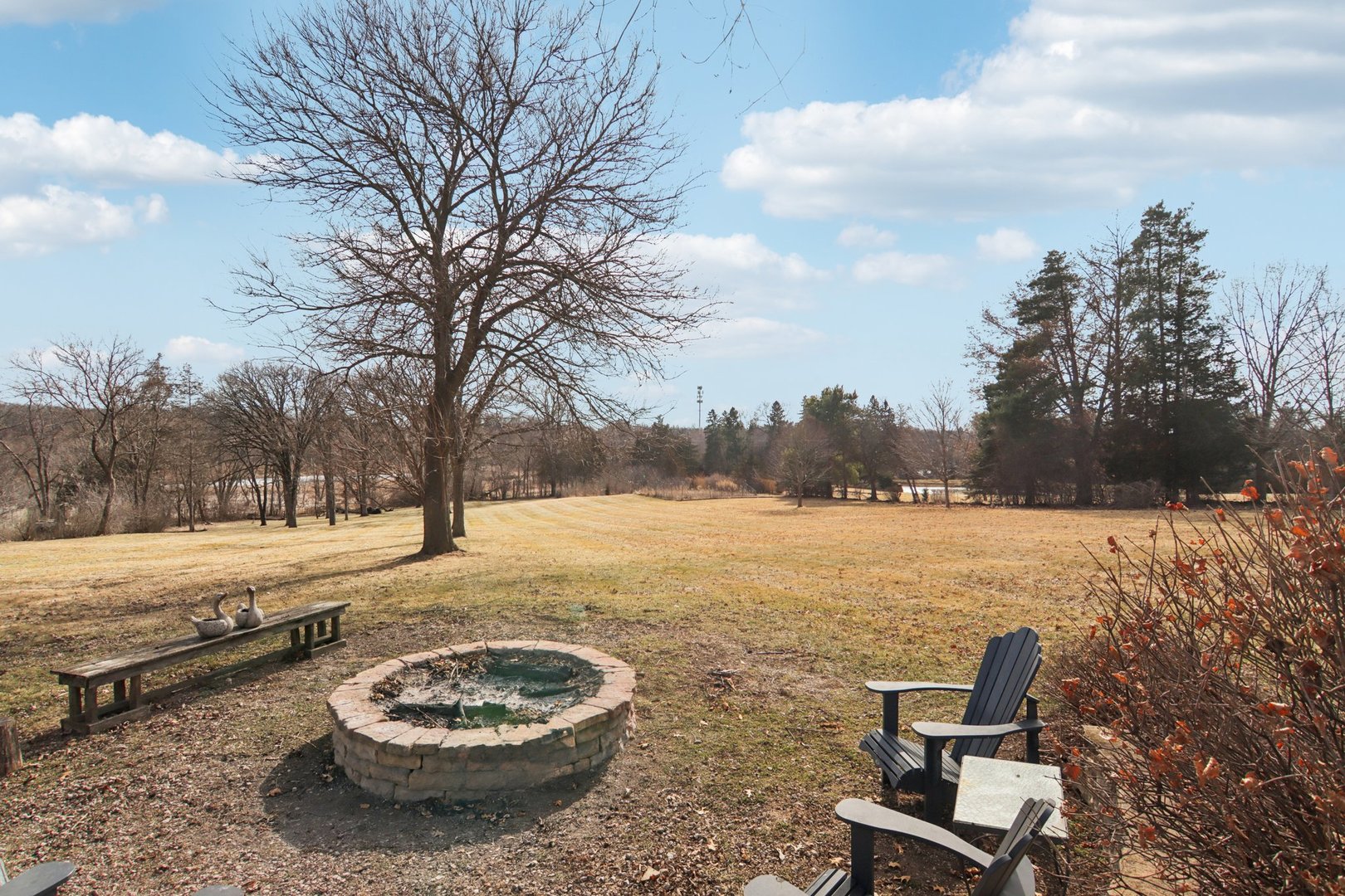 A rare retreat offering privacy, beauty, and thoughtful design. Set on 3.1 acres backing to protected wildlife conservation land, ensuring permanent open views and unmatched tranquility. This breathtakingly renovated 3-bedroom, 2.1-bath ranch with walkout lower level is truly one of a kind. The main level features hand-scraped dark hardwood floors, dramatic vaulted and beamed ceilings, and expansive floor-to-ceiling windows that flood the home with natural light. The stunning chef's kitchen is designed for both everyday living and entertaining, offering high-end stainless steel appliances, concrete and granite countertops, and a striking custom island with a farmhouse sink and built-in appliances. Seamless indoor-outdoor living is achieved with access from both the kitchen and living room to an expansive deck overlooking dual paver patios, a hot tub, and a built-in fire pit. This area is ideal for relaxing or hosting gatherings. The meticulously planned grounds feature perennial gardens, raised garden boxes, paver walkways, and mature fruit trees, creating a peaceful, private sanctuary. The primary suite offers a spa-inspired bath with steam shower, double vanity, and custom concrete countertops. The walkout lower level is fully equipped with a second custom kitchen, a family room with exterior access to an additional patio, two additional bedrooms, and a full bath. This makes it perfectly suited for multi-generational living, guests, or extended stays while still maintaining privacy. The home has been well maintained with recent owner refreshes and improvements throughout. Horses and chickens are allowed on this property. All of this is just minutes to shopping, dining, and the train, delivering a rare combination of privacy, functionality, and convenience.